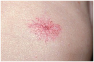 Το αραχνοειδές αιμαγγείωμα είναι μια βλάβη που αποτελείται από ένα κεντρικό βλατιδώδες, ερυθρό μικρό αρτηριόλιο, γύρω από το οποίο εκτείνονται ακτινοειδώς επιφανειακά διευρυμένα ερυθρά τριχοειδή. Η διάμετρός του μπορεί να είναι μέχρι 1,5 εκατοστά. Άλλοτε είναι μονήρες και άλλοτε πολλαπλά. Συνήθως εμφανίζεται στο πρόσωπο, τα χέρια και το ντεκολτέ. Την βλάβη αυτή μπορούμε να την συναντήσουμε και σε παιδιά και σε ενήλικες.