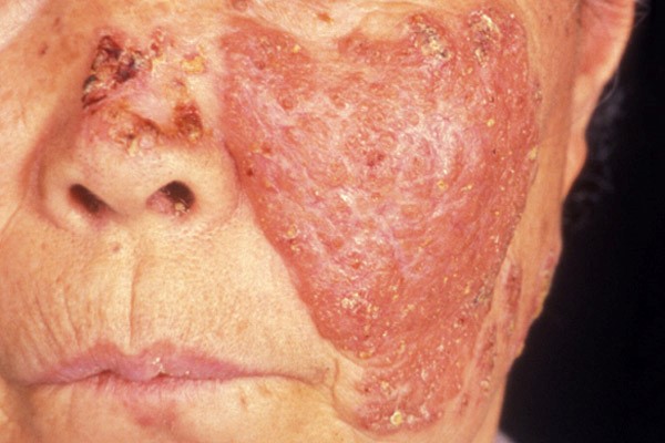 Κοινός Λύκος: Η προσβολή του δέρματος είναι αποτέλεσμα διασποράς μέσω του αίματος ή της λέμφου από μια εστία που μπορεί να εντοπίζεται στα οστά, τις αρθρώσεις ή τους λεμφαδένες. Η βλάβη είναι μονήρης, με την μορφή ερυθρής, επηρμένης πλάκας, στο πρόσωπο ή τα άκρα. Η επιδερμίδα πάνω από την βλάβη γίνεται ατροφική και λεπιδώδης , ενώ μπορεί να δημιουργηθεί εξέλκωση και ουλή. Είναι απαραίτητη η βιοψία δέρματος για να μπει η διάγνωση, αν και η Διασκόπηση είναι θετική (πίεση της βλάβης με γυάλινο πλακάκι εργαστηρίου, μας δίνει εικόνα πηκτής μήλου/ζελέ από μήλο). Μπορεί να υποχωρήσει με Αντιφυματική αγωγή, αν και πολλά περιστατικά καταλήγουν σε χρονιότητα. Χρειάζεται στενή παρακολούθηση καθώς υπάρχει περίπτωση μετάπτωσης σε Ακανθοκυτταρικό Καρκίνωμα.