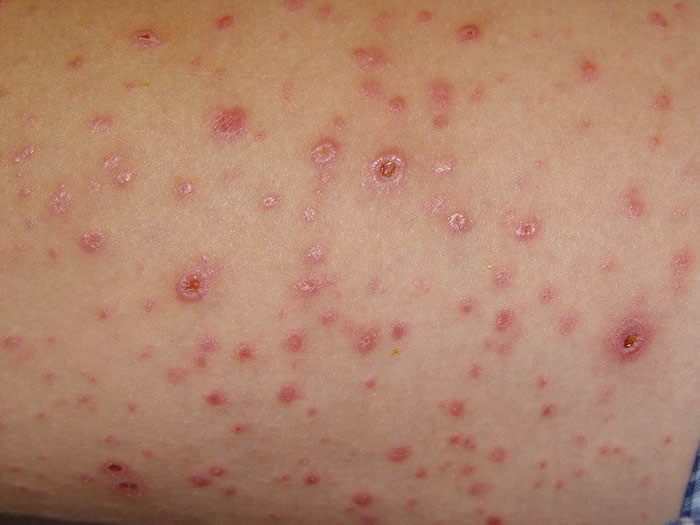 Το εξάνθημα εμφανίζεται περισσότερο στον κορμό τους βραχίονες και τους μηρούς.