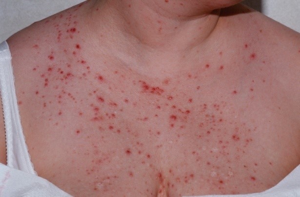 Το εξάνθημα μπορεί να αποτελείται από ερυθηματώδεις φλύκταινες ή βλατίδες στο άνω μέρος του κορμού. Οι ζυμομύκητες αυτοί μπορεί να επηρεάζονται και από την τυχόν λήψη αντιβιοτικών, αλλά και από συνθήκες τριβής- στενά ρούχα.